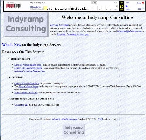Indyramp Consulting had been around a bit before that, originally designed to be a third Internet Service Provider in Indianapolis, Indiana. In those days, it still wasn’t completely insane to seriously consider introducing an ISP that didn’t offer SLIP or PPP connections. Anyway, that plan didn’t quite work out, and I took a job at one of the other two ISPs, IQuest, which is now called LightBound.