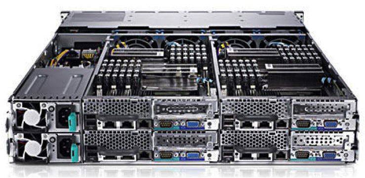 There are also a lot of Dell C6100 “blade” servers (pictured above) out there as well. These are 2u enclosures with up to 4 two-socket nodes. Each blade can take 12 DIMMs (up to 192GB), two quad or hex core Xeon processors, and 3 LFF 3.5 drives or 6 SFF 2.5 drives (SATA, SAS, SSD). And from what I’ve read, you can run four dual-L5420 blades at about 300W.