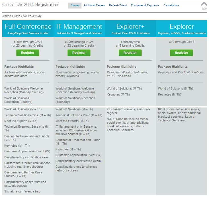 But if you don’t have the money, the learning credits, or the corporate backing to cover a full pass, there’s still hope. Cisco Live offers a $49 “Explorer” pass, which gives you access to the World of Solutions vendor expo and the daily keynotes, as well as the Social Media Lounge (confirmed!) and the Cisco Live onsite store which offers books, gadgets, and Cisco memorabilia. If you have $595 to spend, go for the Explorer+ pass, which gives you the Explorer benefits plus access to two technical sessions.