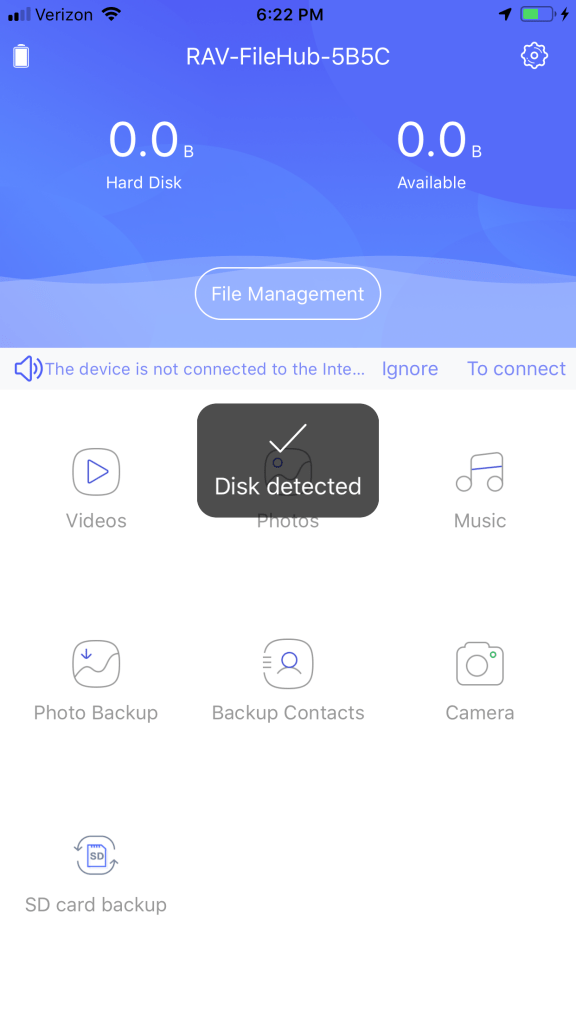 2019-04-29 18.22.15 Published April 29, 2019 at 1242 × 2208 in On The Road With A Travel Router: The RAVPower FileHub WD009 Disk insertion alert