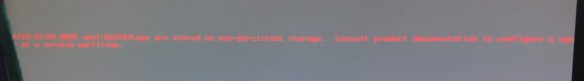 Turns out this error warns you that log files are not stored permanently when booting from a USB installation drive, and it was unrelated to the missing drives (which didn’t show up because I originally had an unconfigured SSD and no configured drives installed–see previous section to resolve this).