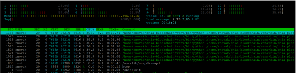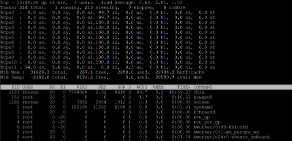While your plot is running, you can use Ctrl+A N to create a new screen “window,” and run ‘top’ or ‘htop’ to monitor resources. This may give you an idea of how to stagger your plots later. Or at least it’s more interesting than the plotter output.