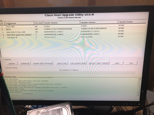 This is a standalone system, even though it’s sitting underneath a UCS 6296 Fabric Interconnect that’s freshly updated as well. I have the two on-board Gigabit Ethernet ports as well as a 4-port Gigabit Ethernet add-on card. And by way of disclosure, while I do work for Cisco and probably could have gotten a better box through work, I bought this one in a local auction out of my own pocket.